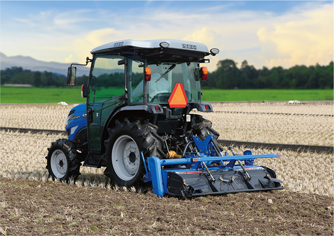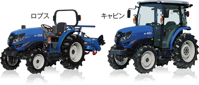 - 馬力ラインナップは25PS〜60PSまで幅広く展開(NT255:25PS、NT335:33PS、NT365:36PS、NT435:43PS、NT465:46PS、NT505:50PS、NT555:55PS、NT605:60PS)。エンジン排気量は機種により1,498cc、1,826cc、2,434ccの3種類を採用。特にNT435〜605は最大油圧揚力2,000kgfを誇り、大型作業機の装着にも余裕で対応します。多段変速ミッションとパワーリニアシフトの組み合わせにより、様々な作業速度と強力なけん引力を実現し、あらゆる農作業に対応できる高い作業能力を備えています。